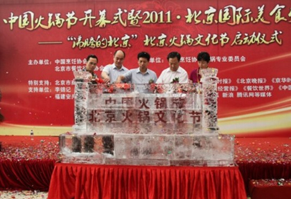 中國烹飪協(xié)會副會長劉秀軍,中國烹飪協(xié)會副會長、北京餐飲行業(yè)協(xié)會會長湯慶順,北京市商務(wù)委員副巡視員趙利宗等出席了開幕儀式。所謂冰火不容,現(xiàn)場卻以冰雕啟動剪彩儀式,火引冰薪、融化了原本屬于夏日的標(biāo)志,火鍋突圍、人們的熱情讓會場頓時(shí)直達(dá)沸點(diǎn)。