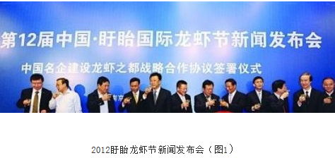 在2012盱眙龍蝦節(jié)新聞發(fā)布上,蘇寧集團(tuán)、雨潤(rùn)集團(tuán)、中江國(guó)際集團(tuán)、金陵飯店集團(tuán)、江蘇省海外企業(yè)集團(tuán)、中江公司、江蘇省演藝集團(tuán)鳳凰傳媒集團(tuán)等一批國(guó)內(nèi)重量級(jí)知名企業(yè)紛紛與盱眙簽署戰(zhàn)略合作協(xié)議,總投資超過(guò)百億共同建設(shè)中國(guó)龍蝦之都。