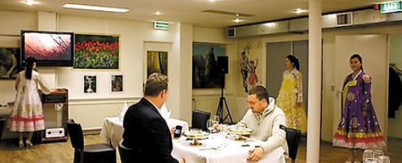 據(jù)報(bào)道,由荷蘭企業(yè)家同朝方合作開辦的這家餐廳正式名稱為“阿姆斯特丹平壤海棠花餐館”。該餐館9名工作人員都是朝鮮人,包括總經(jīng)理韓明姬和4名廚師。餐館里懸掛著幾幅朝鮮畫家的畫作。