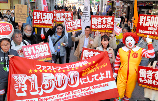 日本快餐業(yè)員工鬧市游行 要求上調(diào)最低時(shí)薪