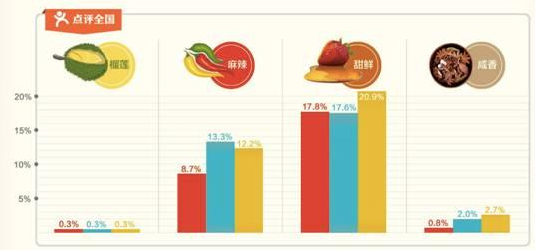 《中國餐飲報告(白皮書2017)》的最新數(shù)據(jù)顯示:2016年,甜鮮口感的受歡迎程度已經(jīng)小勝麻辣這一記憶度最高的口感。